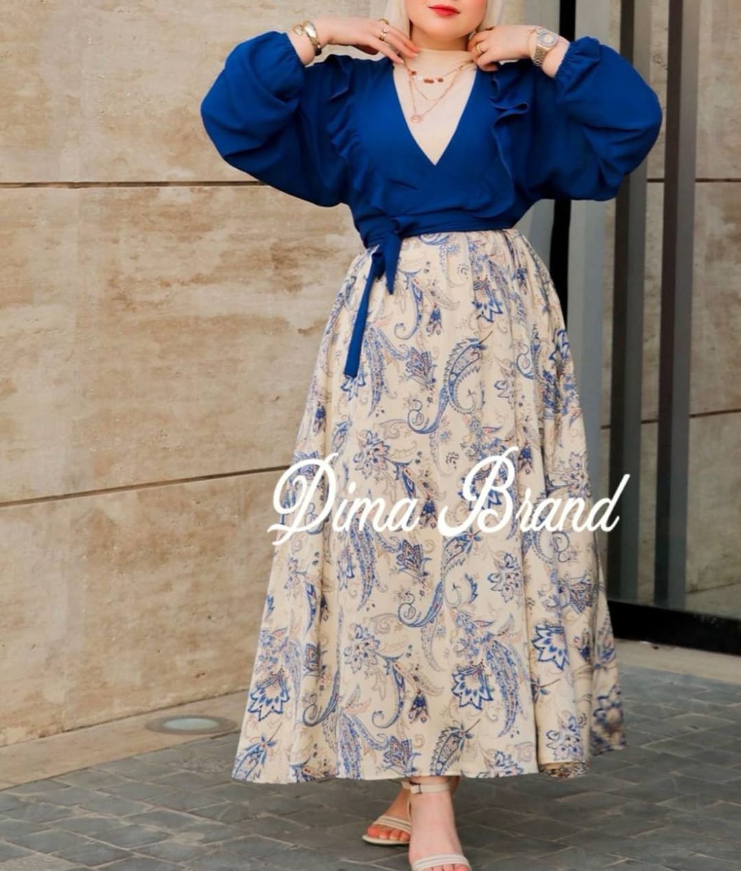 طقم جيبة وبلوزة لف مطبوع ومبطن