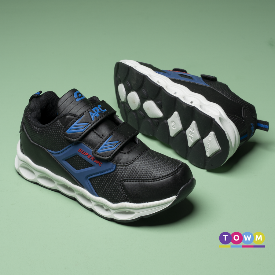 كوتشي أطفالى بمواصفات طبية وألوان جذابة! - نعل PVC مرن وقوي. - خامات عالية الجودة. عشان طفلك يبقى مرتاح وأنيق طول اليوم!